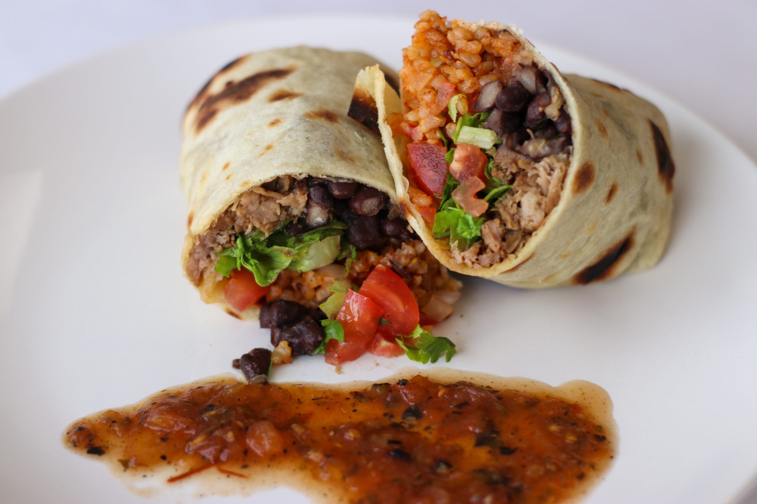 5. Assemble Burrito: Here is the moment you have been waiting for! Heat your tortillas and place a portion of rice, beans, meat, chopped lettuce and pico de gallo on top of each. Roll the burrito together while folding in the sides to seal it together. Serve with your favorite salsa and enjoy!